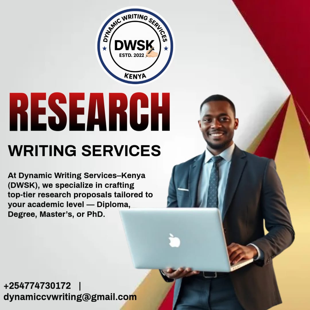 At Dynamic Writing Services-Kenya (DWSK), we provide expert support to help you succeed: Topic Selection & Proposal Drafting Data Analysis & Interpretation Plagiarism-Free & Publication-Ready Writing Guidance from Experienced Experts Turn your research into a well-structured, impactful, and publishable work with professional guidance. Start your journey towards a successful submission…