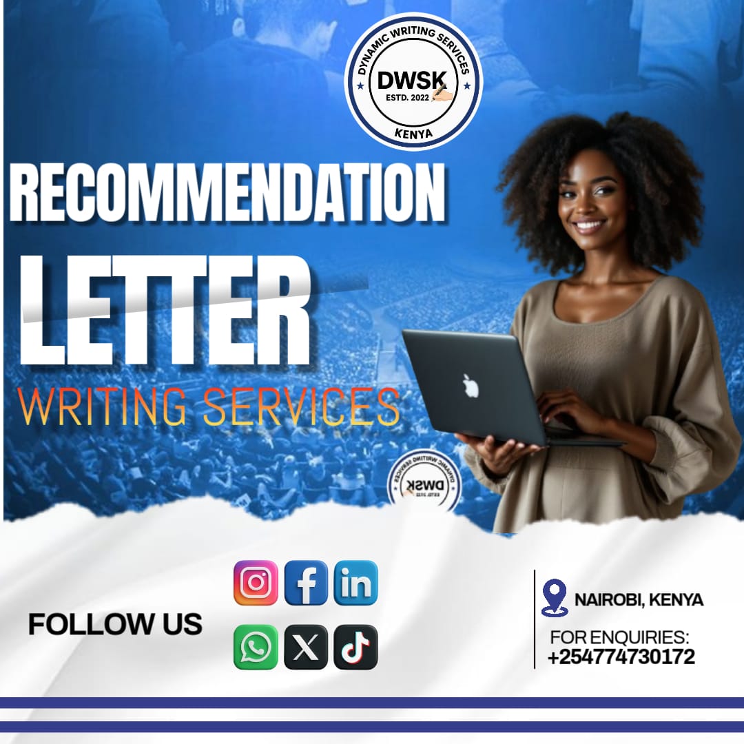 Unlock the power of a compelling recommendation letter with Dynamic Writing Services–Kenya, the country’s leading provider of professionally crafted academic, employment, and character recommendation letters. Whether you are applying for scholarships, university admissions, job opportunities, internships, or professional programs, a strong, well-structured recommendation letter can set you apart. At DWSK,…