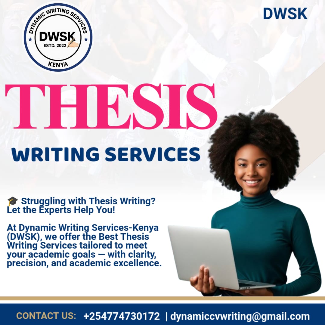 At Dynamic Writing Services–Kenya (DWSK), we specialize in providing professional thesis writing services for Master’s and PhD students across Kenya and beyond. Our team of experienced academic writers, data analysts, and editors is dedicated to helping you produce a research document that is original, precise, and publication-ready. Our Comprehensive Thesis Services Include: Topic selection…