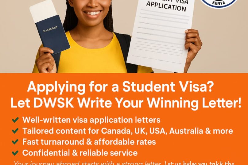 At Dynamic Writing Services-Kenya (DWSK), we understand that your student visa application letter can make or break your dream of studying abroad. That’s why we craft compelling, personalized, and professionally structured letters that boost your chances of approval.